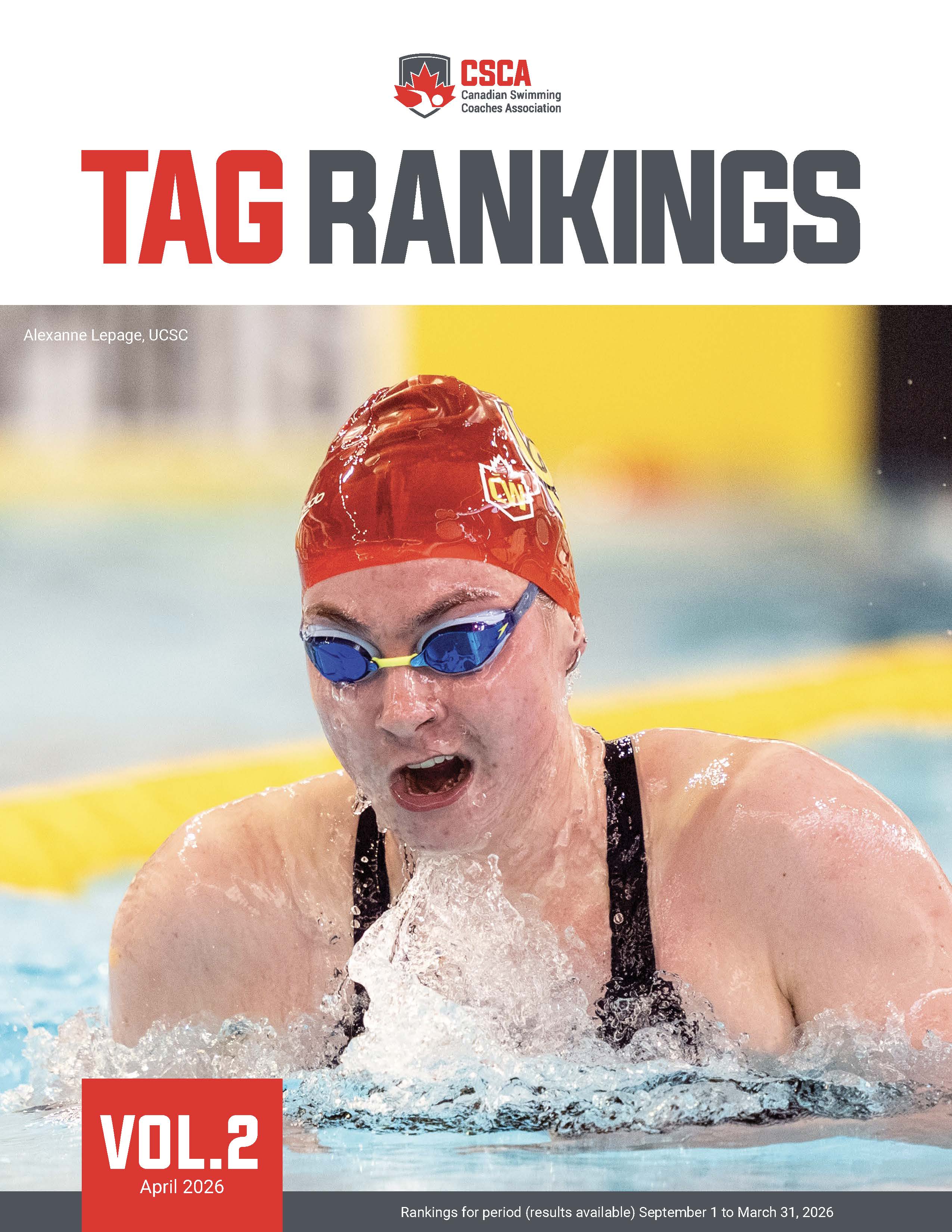 La ACEN est très fière de relancer les classements TAG en format numérique afin de renouer avec leur mission d’origine : célébrer les jeunes nageuses et nageurs, établir un contexte national et inspirer la prochaine génération. Les athlètes d’aujourd’hui ont un accès instantané aux résultats et aux statistiques, mais l’esprit de TAG — un portrait clair, cohérent et motivant de l’élite nationale — demeure tout aussi essentiel.